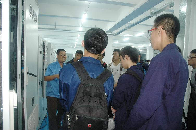 然后市場部牛明部長從電力電子行業發展、企業產品及服務,以及未來同學們關心的就業方向幾個方面給同學們做了詳盡的講解。聽完精彩的講解后由市場部牛明部長、品質部張超部長、技術部孫筱琳部長、技術部劉娜工程師分組帶領學子參觀了企業的研發中心,研發實驗室,生產裝配車間以及檢驗驗收等方面,全面展示了公司的技術實力及產品服務,在電能質量治理、智能電源、蓄電池周期治療等領域的應用做了全面系統的介紹,讓同學們對自己在大學里書本里面的知識有了更系統化和具體化的認知。
